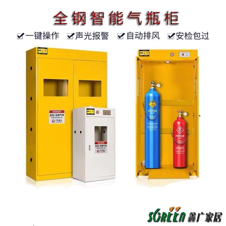 3、柜體上部設(shè)有出風(fēng)口;特別設(shè)計(jì)翻推式墊板方便氣瓶推入使用,另可配自動(dòng)報(bào)警裝置和自動(dòng)排風(fēng)系統(tǒng)